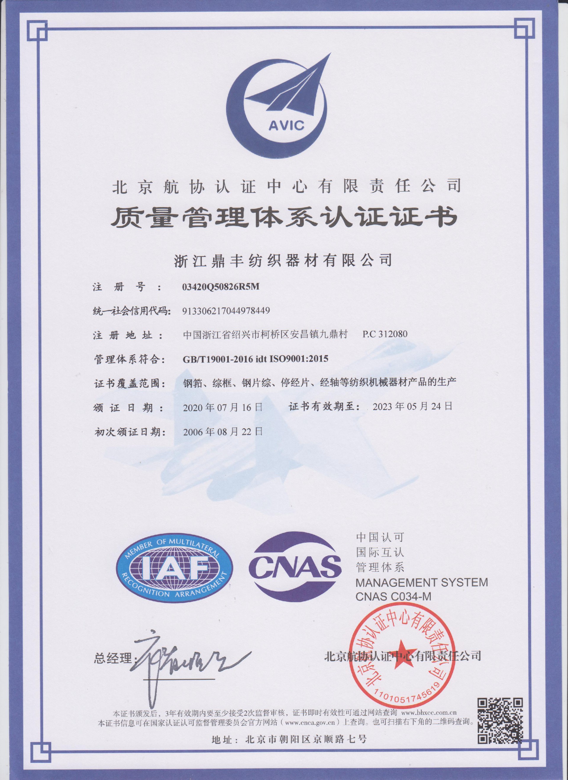 公司現(xiàn)有固定資產(chǎn)6000余萬元,員工300余人,現(xiàn)具有年產(chǎn)噴氣異型筘12萬米,劍桿筘32萬米,噴水筘5萬米,綜框20萬片,鋼片綜2億片,停經(jīng)片1.5億片, 織軸1.2萬套的生產(chǎn)能力。公司“越泉”商標被評為“中國馳名商標”。公司通過ISO9001 :2015國際質(zhì)量體系認證,ISO14001:2015國際環(huán)境管理體系認證,ISO45001:2018國際職業(yè)健康安全管理體系認證,噴氣織機用鋼筘和織機用鋁合金綜框獲得“浙江制造”品牌認證,公司擁有自營進出口權(quán),產(chǎn)品暢銷全國并遠銷印度、巴基斯坦、土耳其、埃及、哥倫比亞、意大利等國家和地區(qū)。